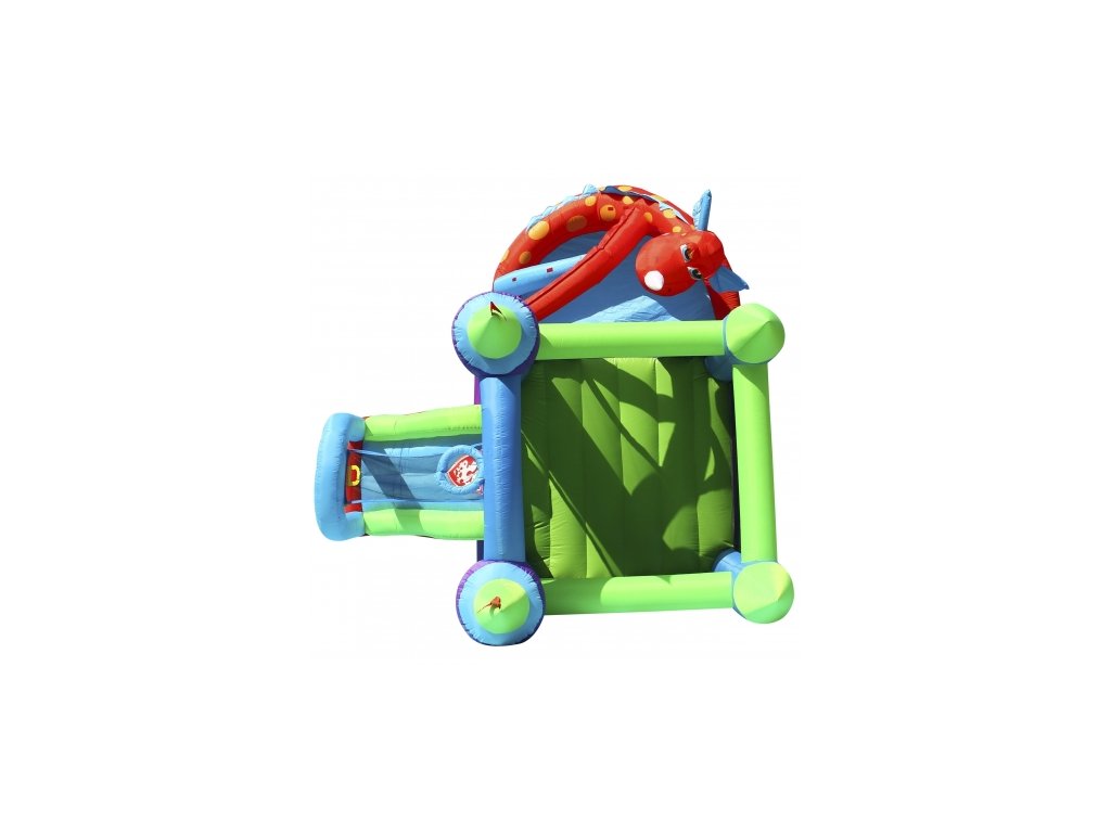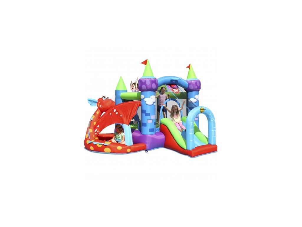 Obľúbený model skákacieho hradu Dráčik hrá veselými farbami. Ponúka skákanie, šmýkanie aj priestor na hru s loptičkami pre menšie deti. Veľmi atraktívny model.