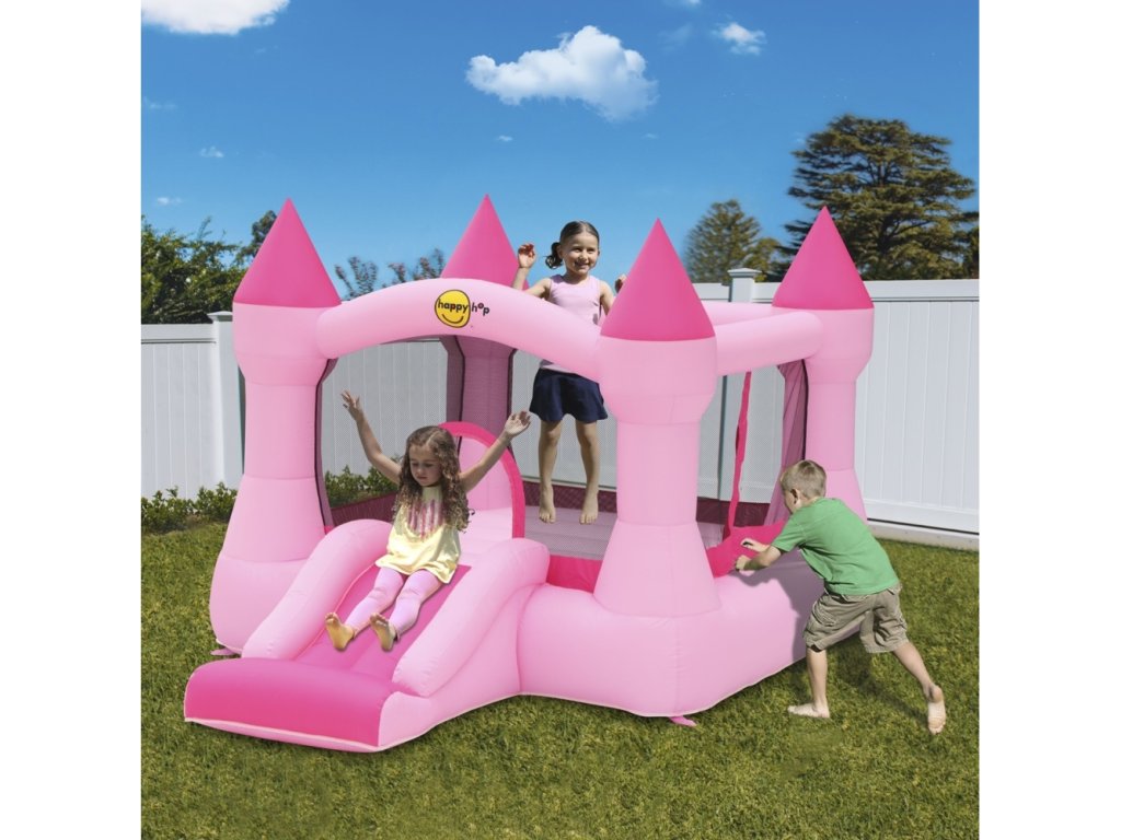 Obľúbený model, ktorý spĺňa predstavu skákacieho hradu. Vstup z pravej strany. Von sa deti šmyknú po šmykľavke. Môžu si nielen zaskákať, ale si aj aktívne užiť prebehovanie a šmýkanie na skvelej nafukovacej atrakcii. Veľká skákacia plocha za prijateľnú cenu.