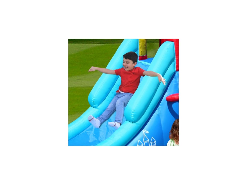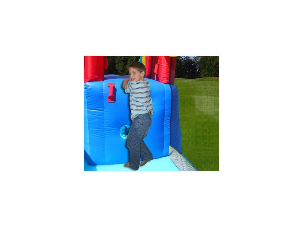 Pevnosť a kvalita je garantovaná dvojitým šitím atrakcie. Všetky priehľadné časti sú zaistené pevnou sieťou.